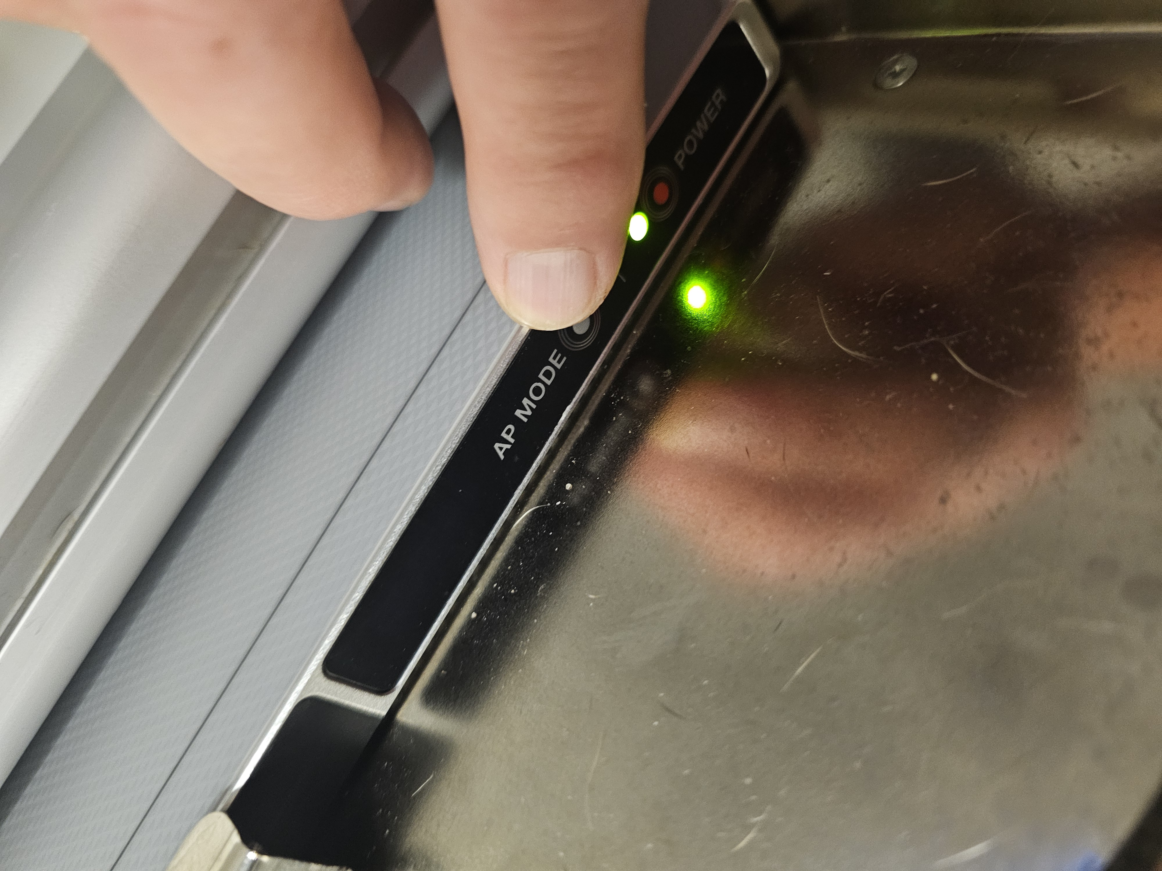 The LCD will show AP mode and then The battery level and SY with a connection meter.