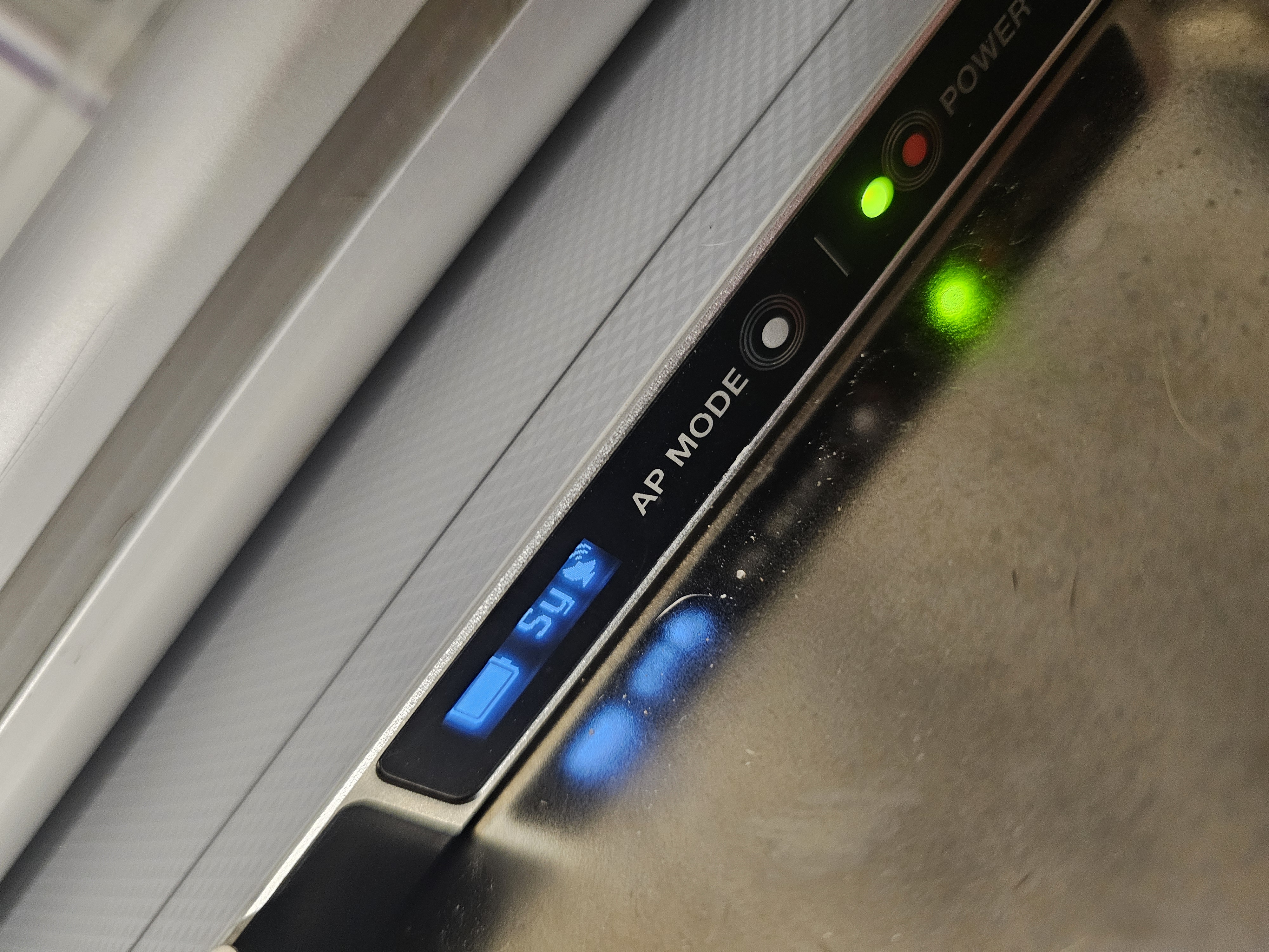 The LCD will show AP mode and then The battery level and SY with a connection meter.